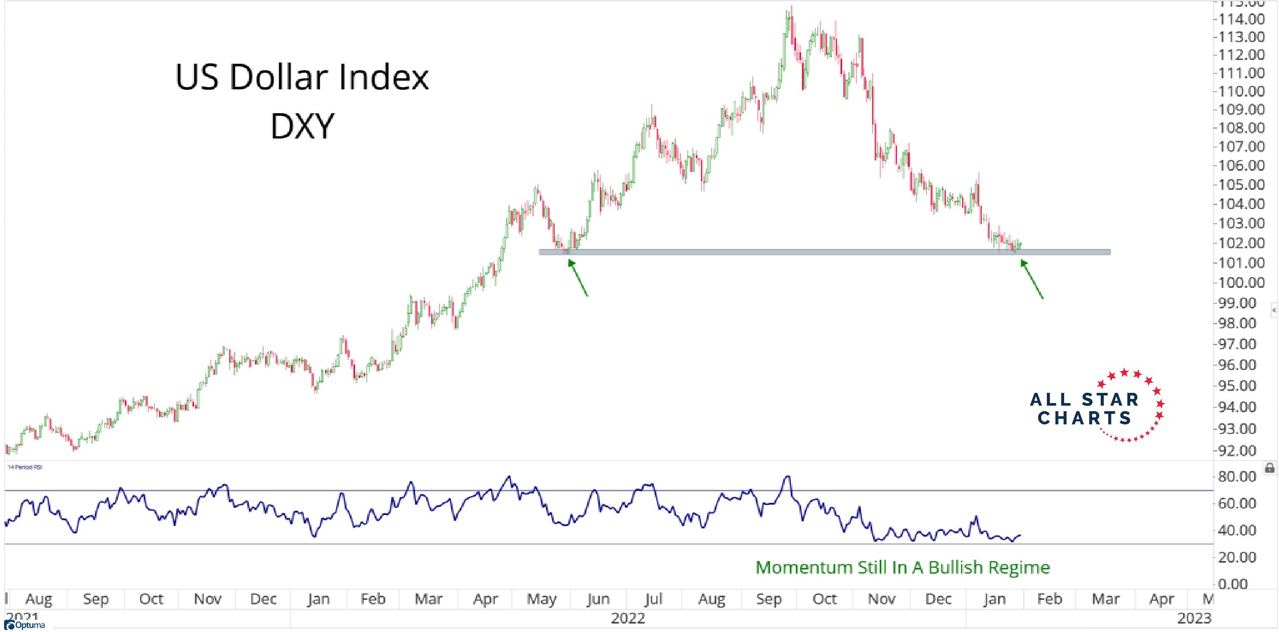 This is about the 50% retracement of the entire move off the lows in 2021, and it was also support last Spring.