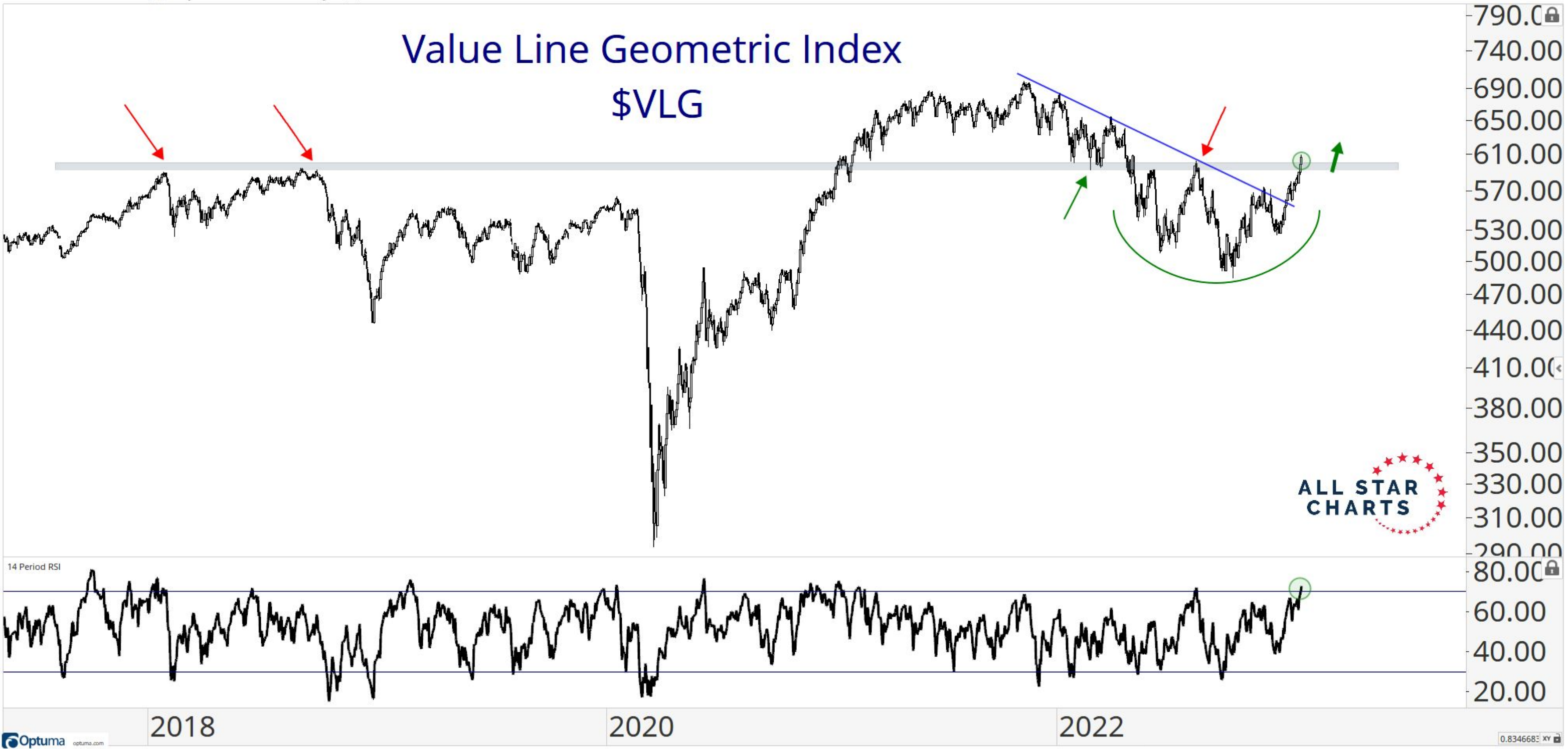 This chart here basically represents the "median" stock's performance. And I think it's worth pointing out that it's creeping up and attempting to break out above those 2018 highs: |